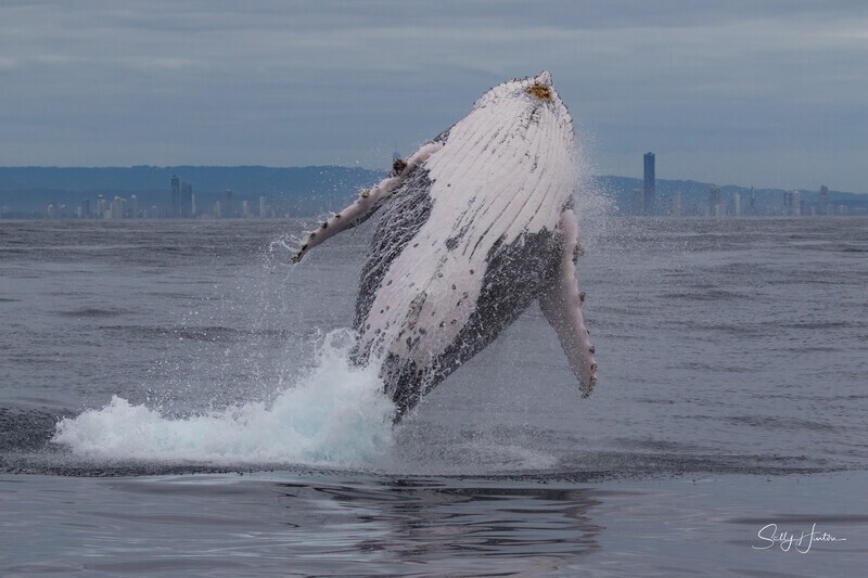 Humpback whale breaching off the Tweed Coast in North Eastern NSW Australia during their annual winter migration