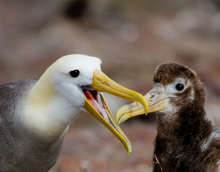 This image is of the magnificent Waved Albatross feeding her chick. The photo was taken on Espanola Island, Galapagos Islands, Ecuador, South America in November 2011.