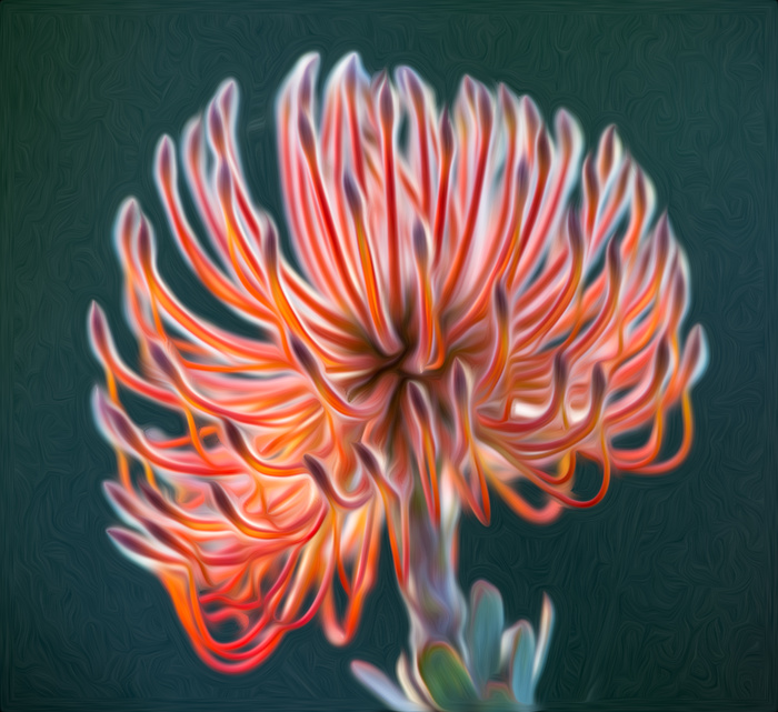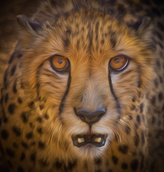 This cheetah (Ferrari) was photographed at the Ann van Dyk Cheetah Centre, Johannesburg, South Africa in July 2012. The image was cropped in Lightroom and processed in Photoshop using Pixel Bender - Oil painting.
