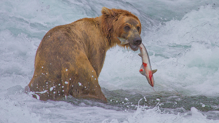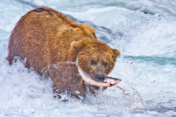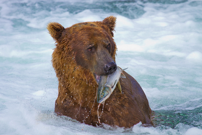 This is an adult Brown Bear which was fishing in the plunge pool beneath the lip of Brooks Falls, Katmai National Park, Alaska in the summer (July) of 2012.