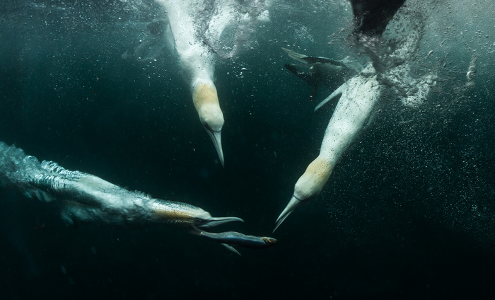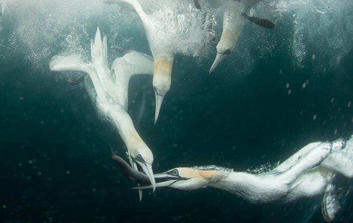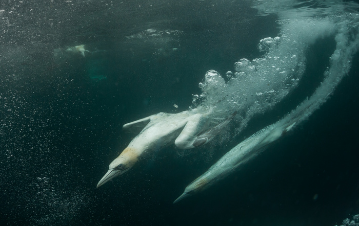 On a photo boat-trip with Richard Shucksmith in the Shetland Islands we photographed these diving northern gannets underwater using Richards' specially designed photo pole. The camera was in an underwater housing at the end of the pole and the shots were taken from the boat with a trigger attached to the pole. This was in the Scottish summer of 2018.