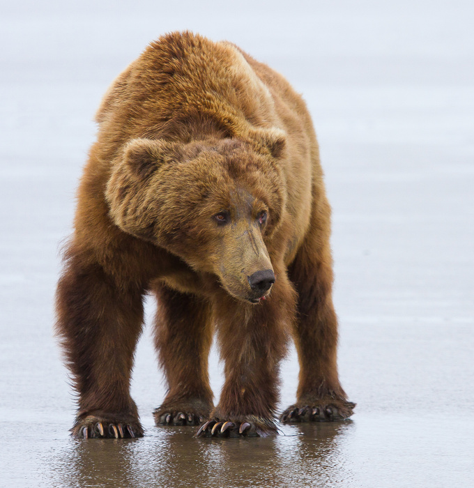 This scarred, adult male brown bear was following his female partner waiting to mate - she was clamming and he was bored! Walking with Bears at Silver Salmon Creek, Lake Clark National Park, Alaska in the summer (July) of 2012.
