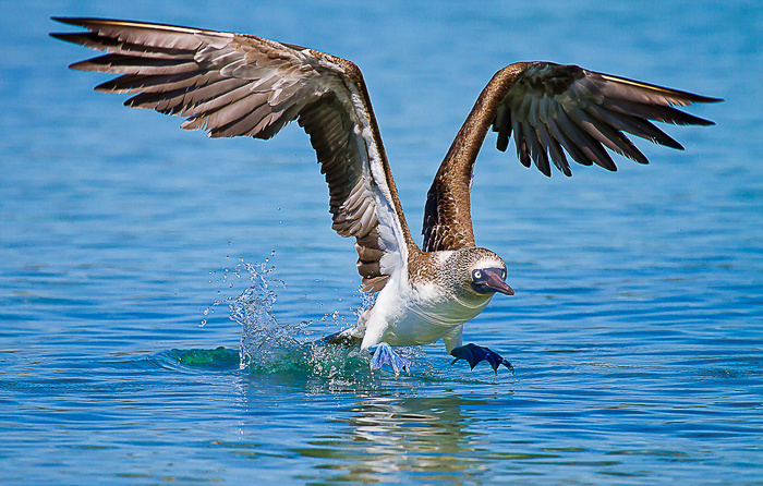 This image is of the Blue Footed Booby taking off after diving for fish. These Blue Footed Boobies were feeding, circling and diving at Cormorant Point, Floriana Island, Galapagos Islands, Ecuador, South America in November, 2011.