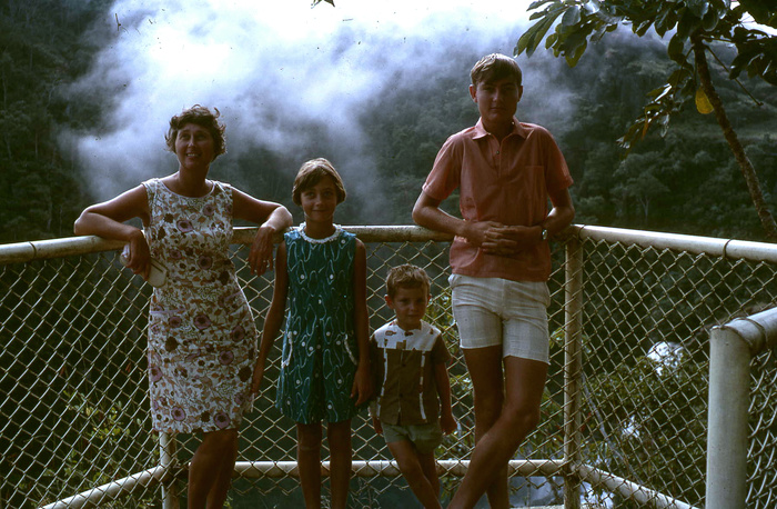 Genifer Hinton with her three children, Sally, Larry and David in approximately 1966 at Rouna Falls, Sogeri